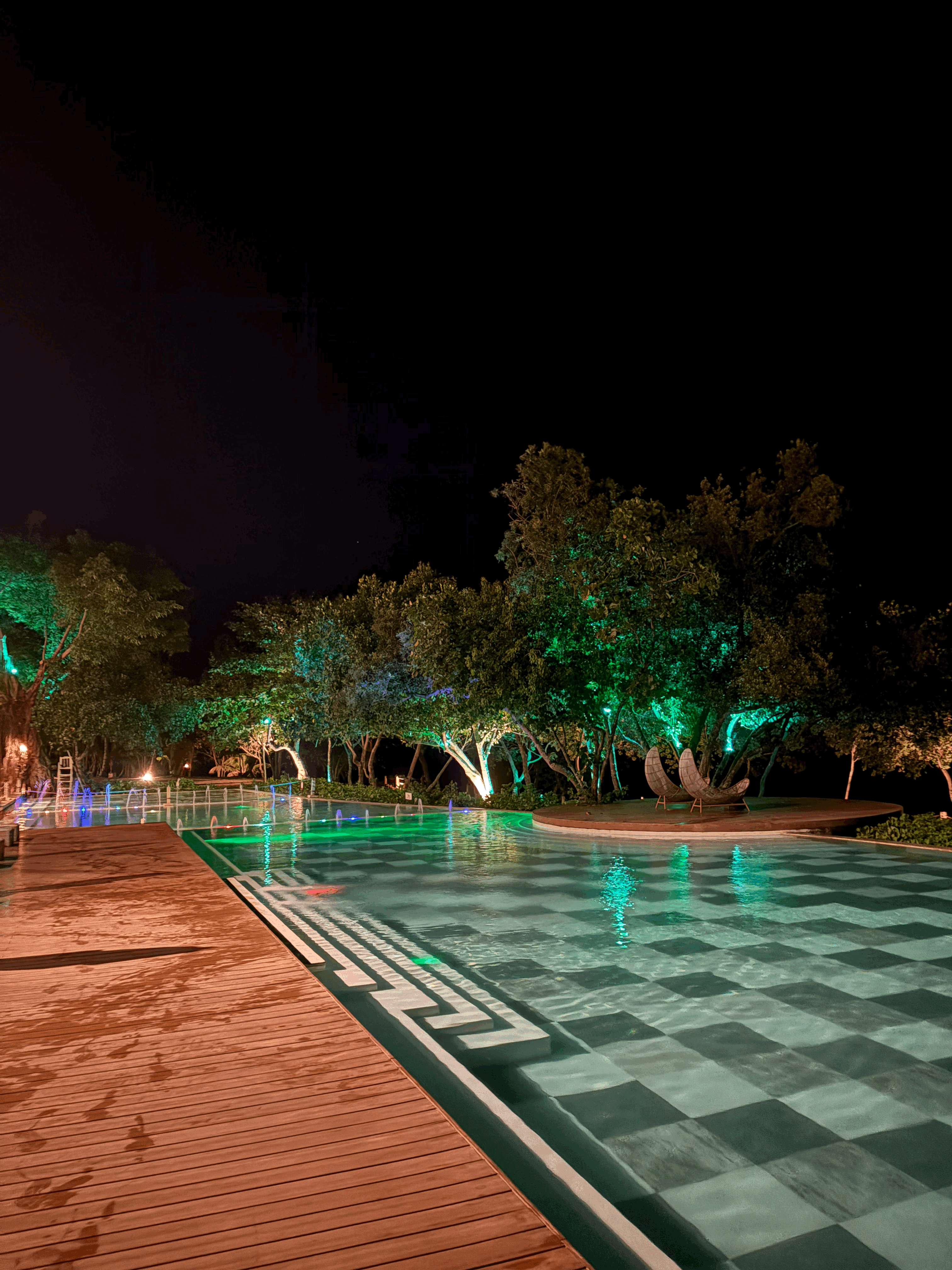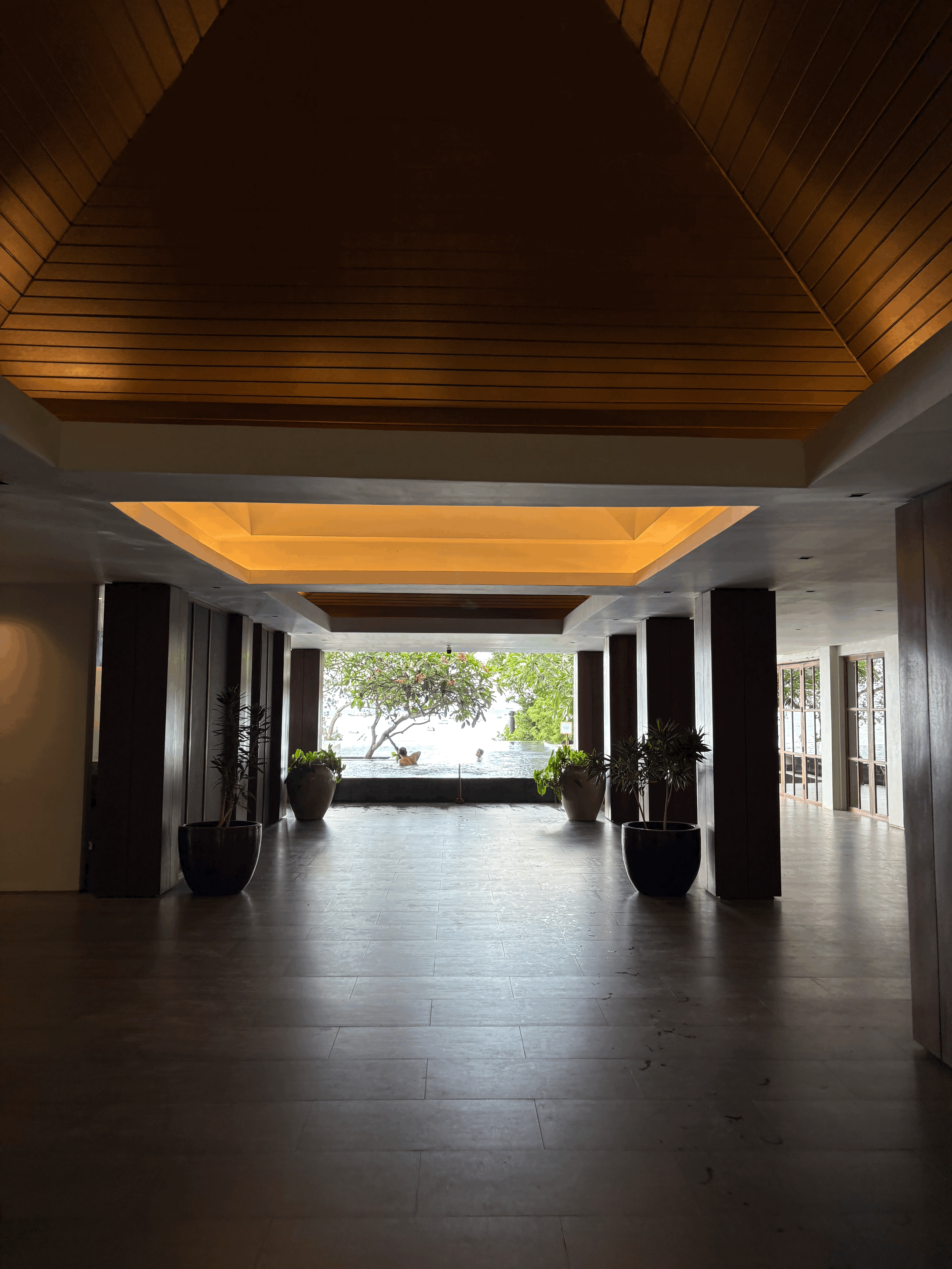 위에서 체크인할 때, 로비 수영장을 소개해드렸는데요. 일몰 시간대나 아침 시간대에는 어떤 느낌인지 공유드립니다.