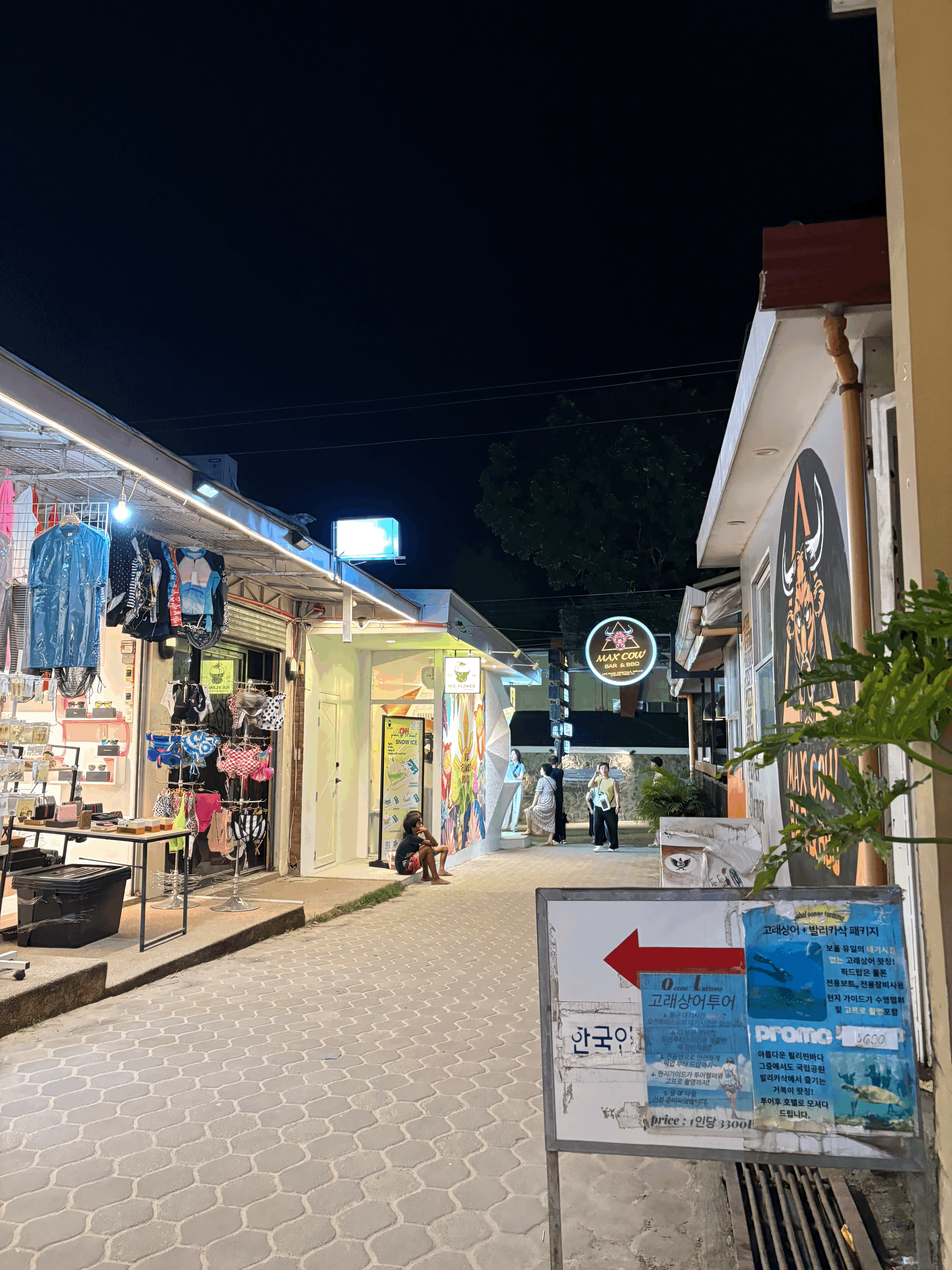 제가 밤 거리 다닐 때 치안을 신경쓰는 편인데 이 길가는 괜찮더라구요. 사람들도 많이 다니고 식당, 매장들이 즐비해 있습니다.(첫번 째 사진)